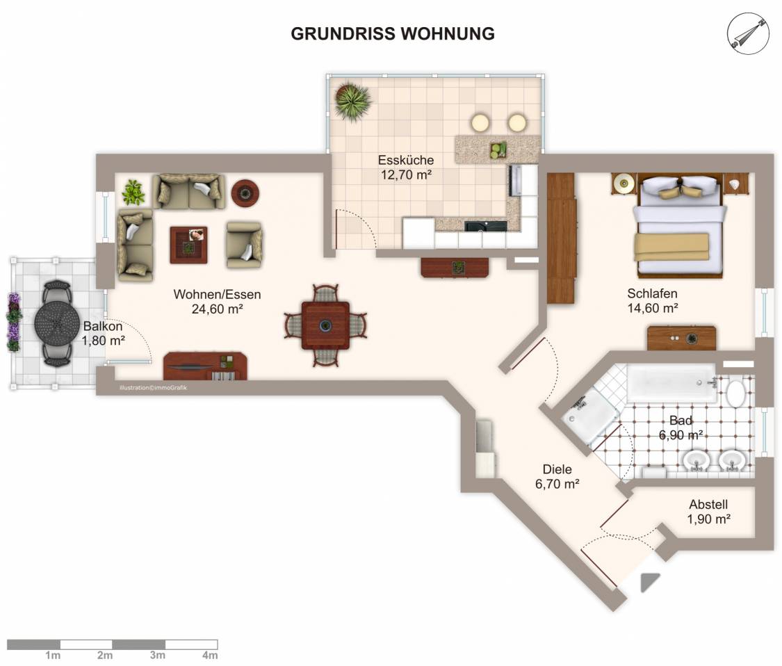 - großzügiger Wohnraum mit Zugang zum Balkon und zur Wohnküche
